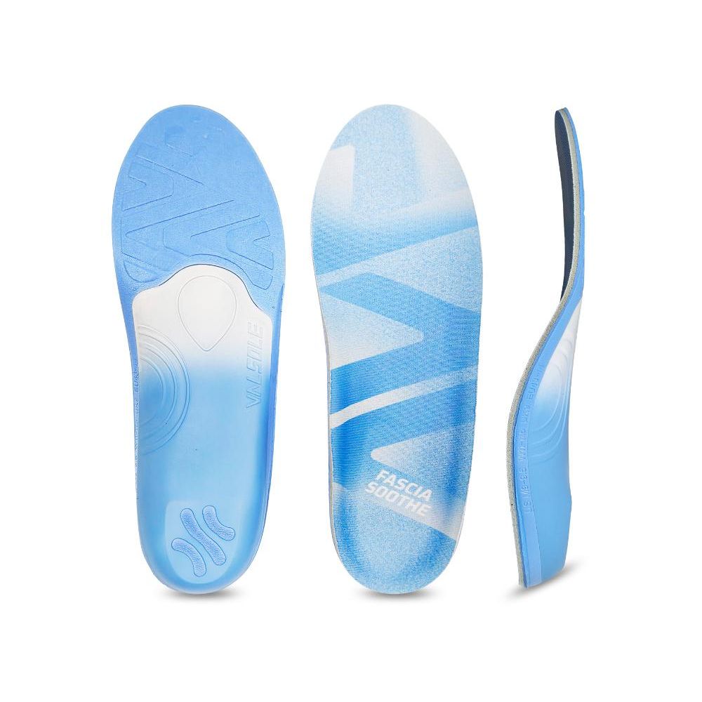 Material: Superfície: Tecido antiderrapante de baixa elasticidade (impressão por sublimação) Camada intermediária: Espuma de PU de alta densidade Parte base: EVA azul com alta refletividade Placa de suporte: Nylon (acabamento bicolor) Calcanhar: barra de suporte da fáscia plantar (embutida) Características: 1. Projetado com base em conceitos alemães de correção dos pés. 2. O design da placa de suporte, adaptado ao arco do pé, dispersa e reduz eficazmente a pressão sobre o pé. 3. Calcanhar profundo + ajuste de estabilidade do calcanhar aumentam efetivamente a estabilidade do calcanhar e mantêm o alinhamento adequado dos membros inferiores. 4. A superfície é revestida com tecido antiderrapante, que garante aderência, respirabilidade e resistência ao desgaste. A combinação de material composto multicamadas proporciona amortecimento em várias camadas; contém espuma de PU de alta densidade para conforto, respirabilidade, redução de odores e para manter os pés frescos. 5. Barra de suporte integrada para a fáscia plantar, mais adequada para pessoas com fascite plantar e problemas relacionados. 6. A placa de suporte em náilon de alta resistência (PA) pode atender às necessidades de correção de pessoas com maior peso. 7. Adequado para caminhadas diárias, trilhas ou para pessoas que ficam em pé por longos períodos. 8. No geral, é leve e mais adequado para diversos tipos de calçados: tênis esportivos, sapatos de trabalho, calçados para atividades ao ar livre, etc.